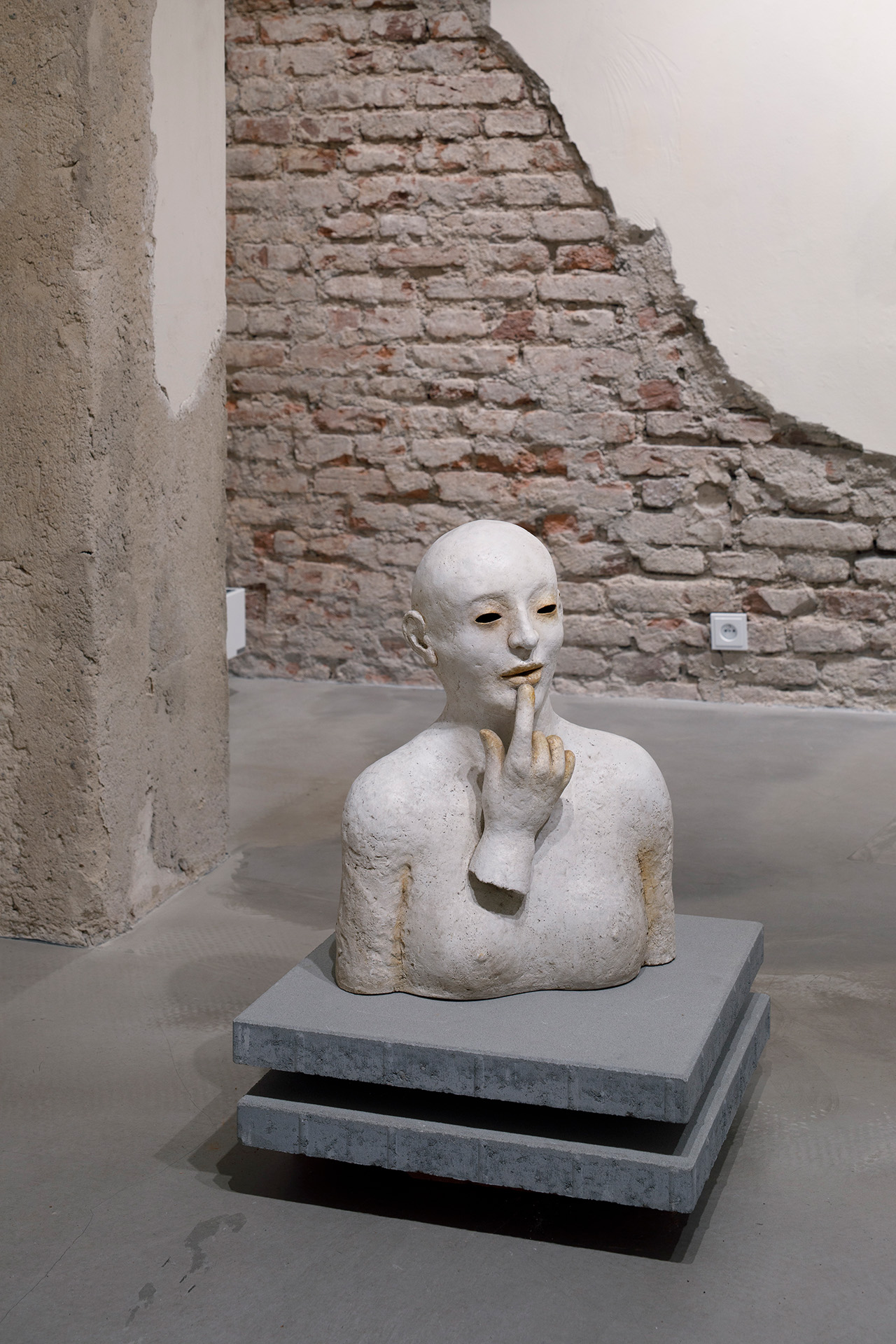 The body and face, two fundamental elements of Vika’s work, appear here in constant metamorphosis. The mask becomes a mediator of transformation: it allows us to forget our own boundaries and lets inhibitions disappear. Sculptural objects made of ceramics, paper, and combined materials tell the story of the female figure as the bearer of many roles—daughter, lover, mother, artist, storyteller. Viková does not shy away from ambivalence. The gentle poetics of her works often clash with irony and darker undertones.