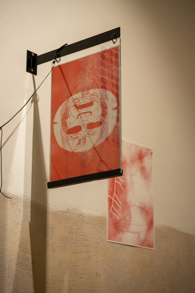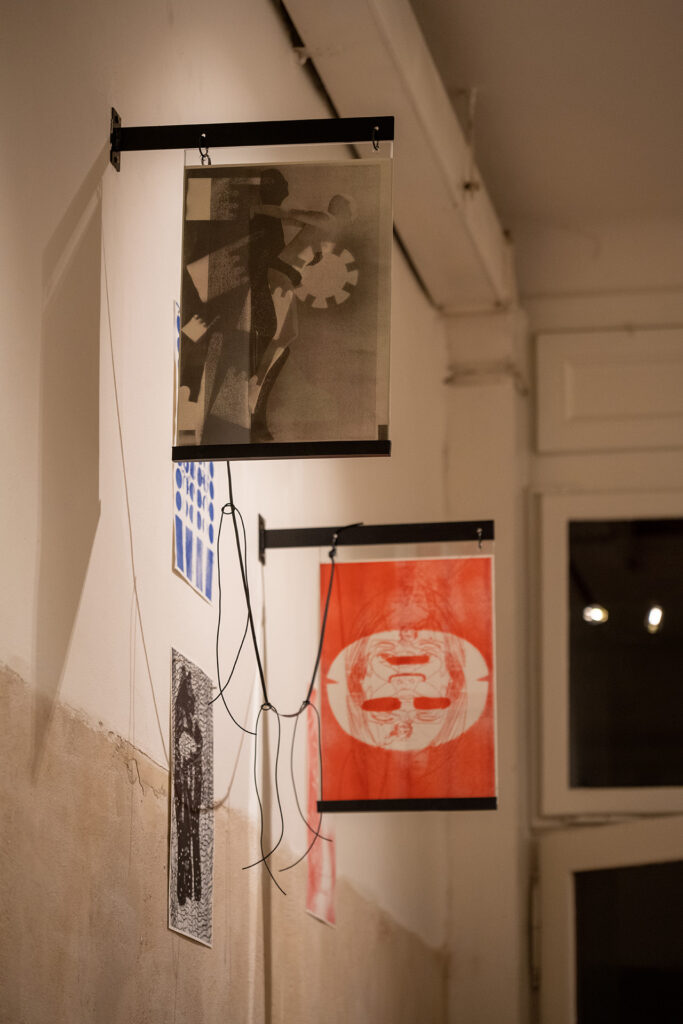 The selection of works displays abstract drawings and paintings by Barbora Lepší and Tomáš Absolon, and is combined with experimental photographs by Lenka Glisníková.