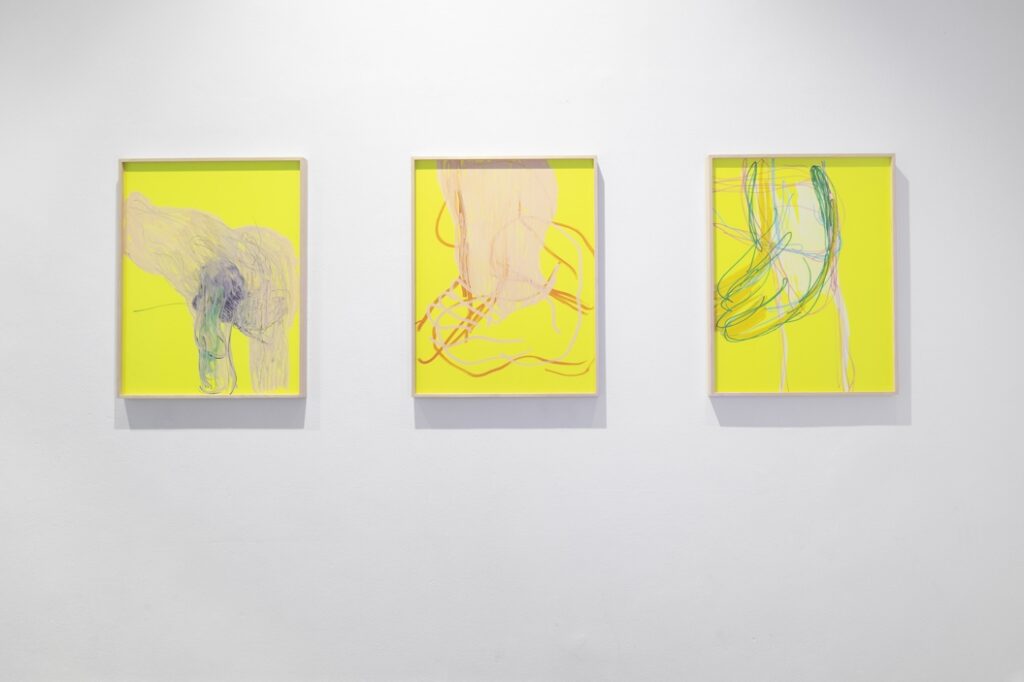 The selection of works displays abstract drawings and paintings by Barbora Lepší and Tomáš Absolon, and is combined with experimental photographs by Lenka Glisníková.